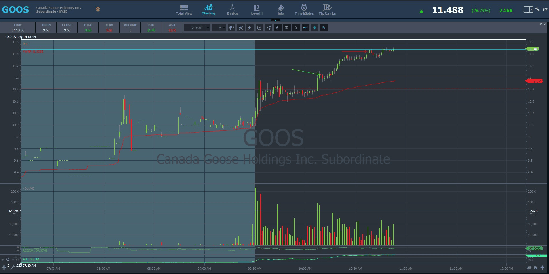 Day. Bought earnings winner on Reclaim HOD B/O w/100@11.03, risk 10.82, TGT 11.45-11.66 (2-3R). I had an order ready to go in case Risk was hit and sent it thinking it was a Profit order so it sold my position .02 short of my 1st TGT. Good trade, but a better more confident entry would've been 11.06 for that pennant B/O. I did wait for confirmation of the B/O before entering so kudos on that! Working on patience.