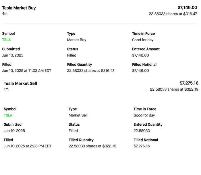 My favorite set up, TSLA was up over yesterday's close. Took a dive early. I waited until after 11am to get in. I was not 100% confident on any of the watchlist. I was also keeping and eye on DJT, CRWD, PLTR & NVDA. Hit my goal and dipped down twice. I felt there was still strength and stayed in longer. Happy with the gain.