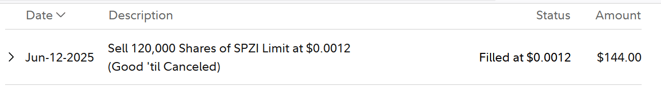 SUPER SALE STRATEGY per my 2/27/21 Profitly blogpost. Dip bought 5/30 12:51 $0.0011 50% off 5/8 $0.0022 HOD. Price ranged $0.0011-$0.0013 5/30-6/5. When I realized that it wasn't going to bounce, I lowered my Limit Sell to $0.0013 on 6/5. Price hit $0.0013 6/6 & 6/10-12 but volume was too low to get me out so I gave up, lowered my Limit Sell to $0.0012, & Fidelity got me out instantly 6/12 12:49 $0.0012.