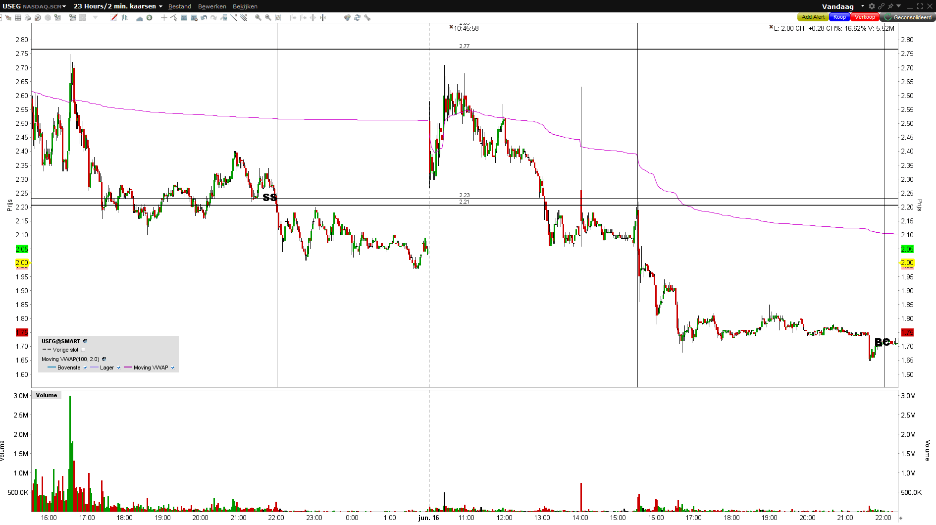 ENTRY: DD1, was up omdat usa oil runt door oorlog Israel - Iran. up on 55%, weinig cash. Vind doji te goed om te negeren. Ik neem het risico en short over het weekend. short 2.23. EXIT: Bijna uitgestopt in PM door de verslechterede situatie met de oorlog maar met wat geluk raakt het niet mijn stopprijs en rest van de dag gedaald. Cover op 1.72 voor 23% win. LES: prima trade en goed aan de setup gehouden ondanks het nieuws al is dit wel extra risky.