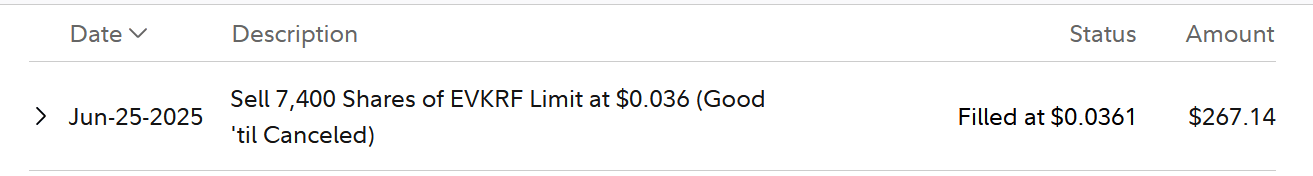 I got in this trade because it was OTC Top 3 Biggest % Gainers with Volume on 6/9 & I made 20% on it on 6/9 & think I can do it again. Dip bought 6/24 14:57 $0.03 on the dip back to 5/7 b/o support. Price bounced to 6/25 8:52 $0.0367 but I noticed that it was boxed in between Bid $0.03 151k & Ask $0.037 143k on low volume too so I got on the $0.036 Ask & Fidelity got me out 9:36 $0.0361.