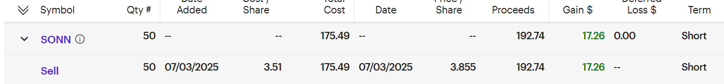 Big thanks to Tim! After following the Challenge Chat and the guidance, I took my second trade. Still a bit nervous—especially with the long weekend coming up—but feeling more confident than before. On 7/3, entered at 11:26 AM with 50 shares at $3.51. Exited just over an hour later at 12:31 PM at $3.855. A small win, $17.26 profit—I'll take it! Progress is progress, and every trade is a lesson.