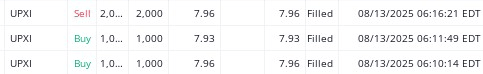 So I was noticing a trend that I should have just followed.. as it is pretty close to what was predicted.. I have 2-3 5 minute greens with 1 red.. It did the 5 minute red, I bought and it did a green.. I could have gotten out for another almost 10 cents.. probably should have.. but I didn't.. I got out when I got scared.. We did just have 1 green and 1 red.. then HOD right after.. There is major resistance at the 8.05-8.06 level.. But the 2-3 green to 1 red trend just broke..