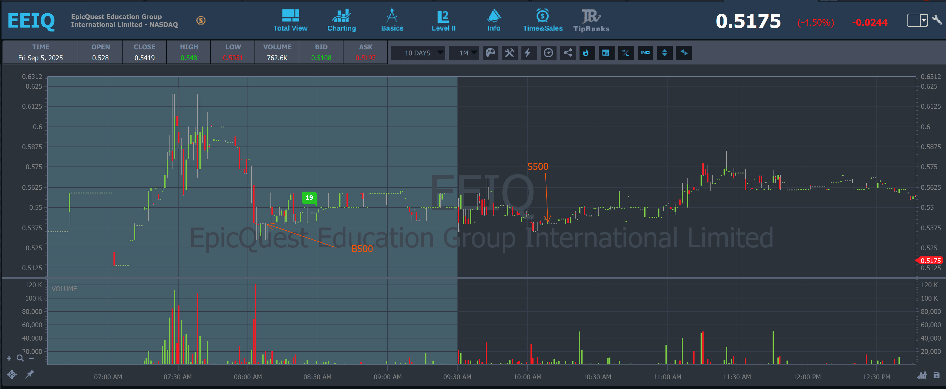 Spiked PM from .51 to .61. Call out in chat. Bought the dip at .54, thought it could get to at least .56. Touched .56 for a minute or two at 9:43, volume wasn't great. Got out to break even just after 10am. Stock ended up getting to .57 at 11:15 just didn't have patience with the low volume, didn't want to risk it.