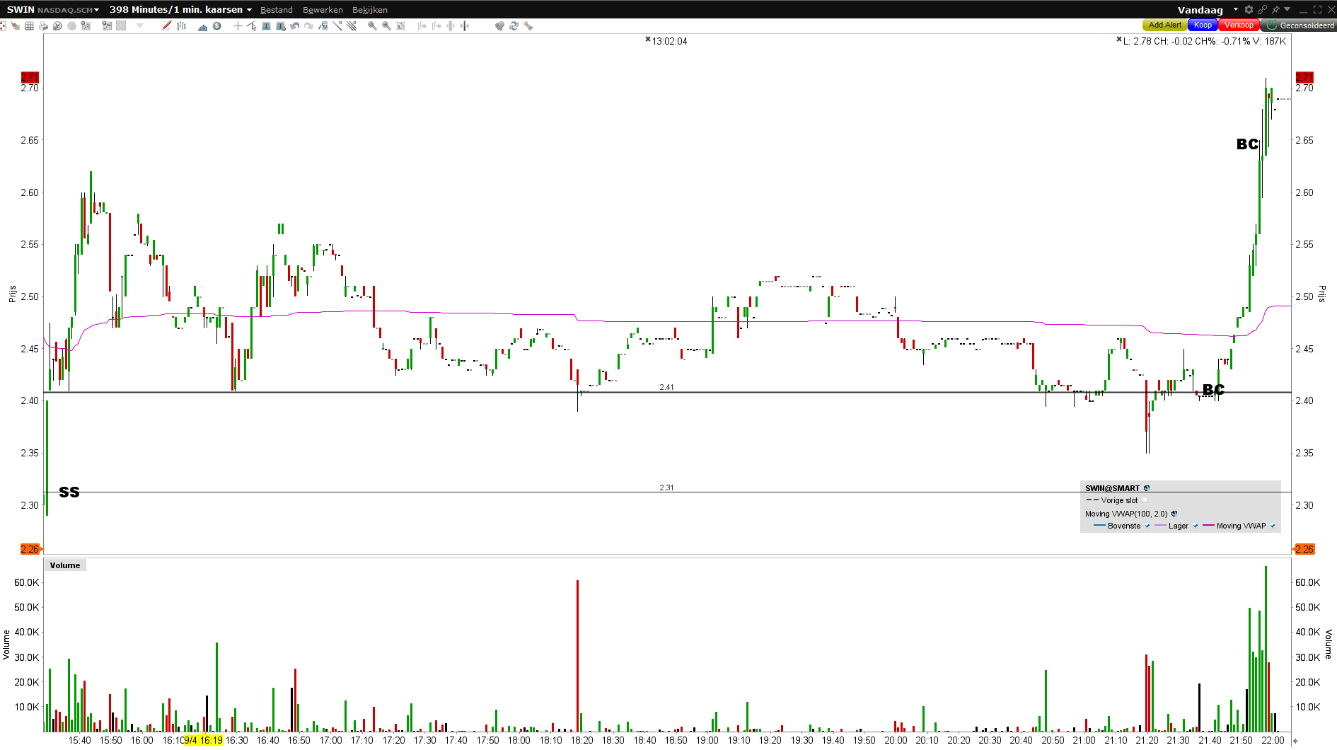 ENTRY: SRD, stock gister down ong -38%, hongkong. Ik short 2.31, hele slechte entry want open is 2.41. EXIT: hele dag zijwaarts maar net wanneer ik wil gaan coveren squeezen we. LES: Nog een voorbeeld waarom 30 min voor close coveren beter is. Te vaak komt het voor dat de laatste 30 min een trade verneuken. Stond hele dag 5k ongerealiseerd maar uiteindelijk dag afgesloten met 1.4k winst. Nog steeds groen maar wel kut.
