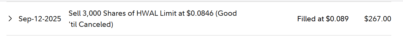 SUPER SALE STRATEGY per my 2/27/21 Profitly blogpost. Dip bought 5/1 13:59 $0.1115 1k 53% off 11:09 $0.24 HOD. Failed to get out 5/2 $0.15 & 5/5-6 $0.142 as I thought it would go higher. Price fell on low volume. Added 6/2 8:57 $0.05 2k. Price hit 8/8 $0.10 but I thought it would get through & run. I give up & out 9/12 10:59 $0.089 only 40k shares traded today.