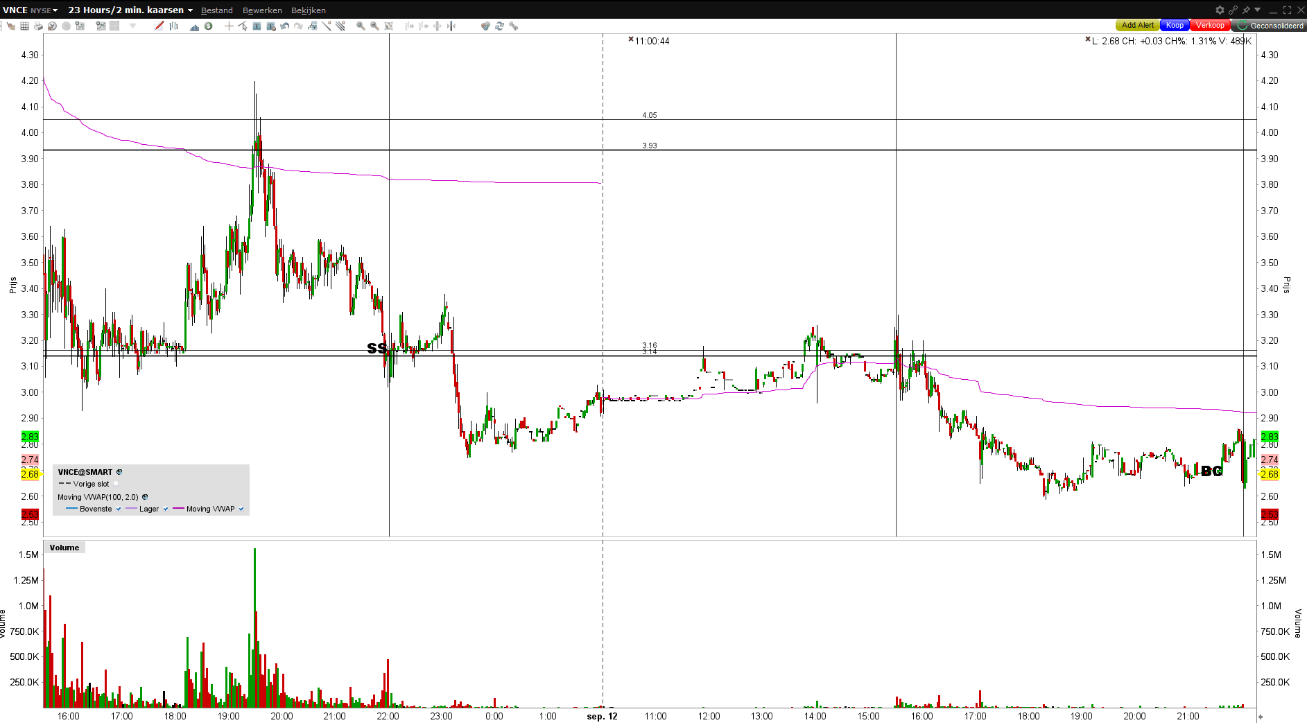 ENTRY: DD1, up ong 90%, best flink dus. Ook weinig cash dus verwacht best veel van deze trade. Short 3.16, close 3.14. EXIT: Leek veelbeloven in AH maar kwam terug maar ook gelukkig weer naar beneden. Cover op 2.70 voor ook een nette 15% gain. LES: Iets meer verwacht maar kan niet klagen. Prima trade.