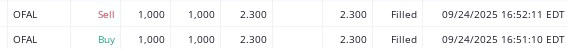it was a twitch purchase.. didn't quite mean to do it. I could have made 3 cents and probably should have but when it started down, I just got out as it really wasn't where I wanted to get in. ..now it goes.. lol..2.40