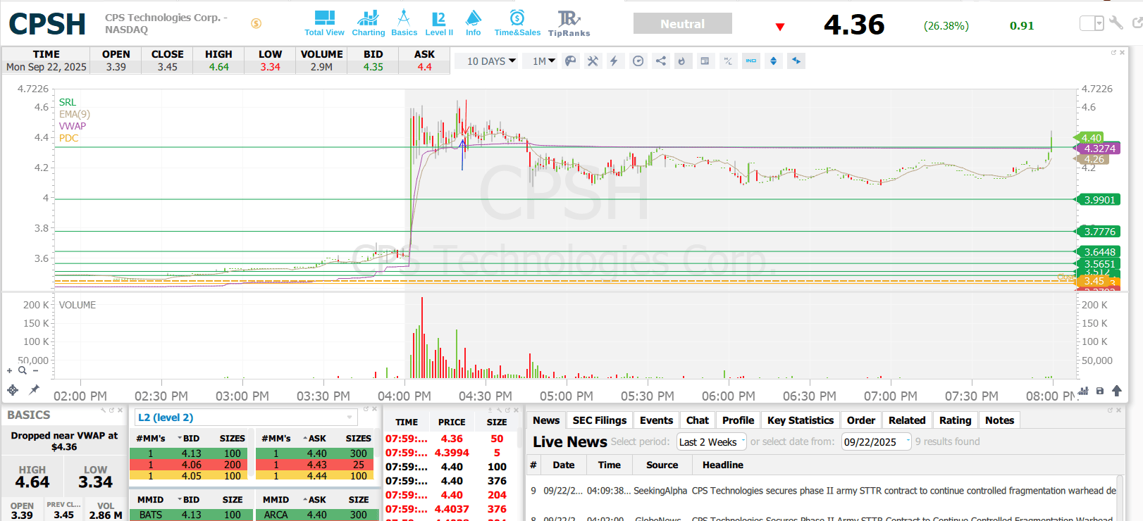 Afterhours runner on Army contract. I want a dip buy for further run and possible overnight swing. I chased here and should have given it more time to consolidate and set a support level. I just reacted to the news here and jumped in. So I see that my restraint on taking a random trade is weak on this one.