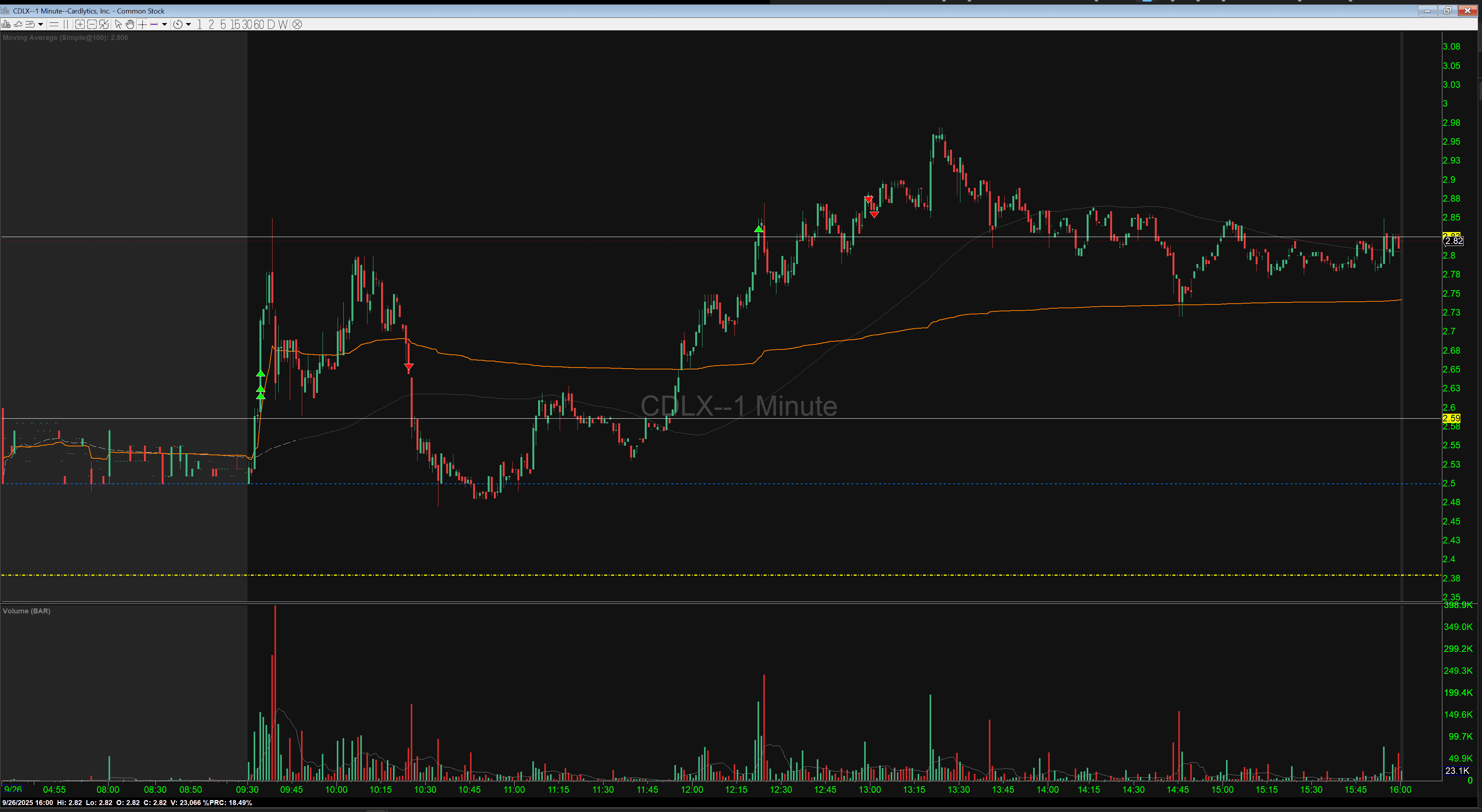 Didn't work, was looking for a push $3+ but it struggled around recent supply at 2.80s, took it off a bit prematurely but it should have held VWAP. I was willing to swing it overnight if it pushed and held $3+ but it simply didn't work. Later in the day it set up again, but I felt I was chasing it into highs.