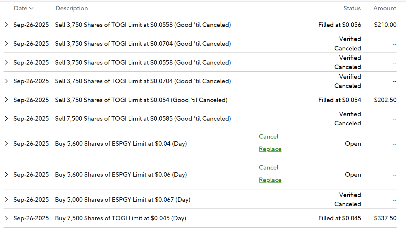 I got in this trade because it was OTC #1 Biggest % Gainer with Volume on 9/24, is a 3-time former runner since 12/3/24, & I made 10% on it yesterday think I can do it again. Dip bought 11:14 $0.045 7.5k 20% off 9:54 $0.0565 HOD at past 3 day support area. Bounced on low volume. Sold 3.75k 12:18 $0.054 to lock in profits. Price hit 12:30 $0.0564 no b/o & still low volume so I sold other 3.75k 12:44 $0.056. Price hit 12:52 $0.0589 and continues slowly up on low volume.