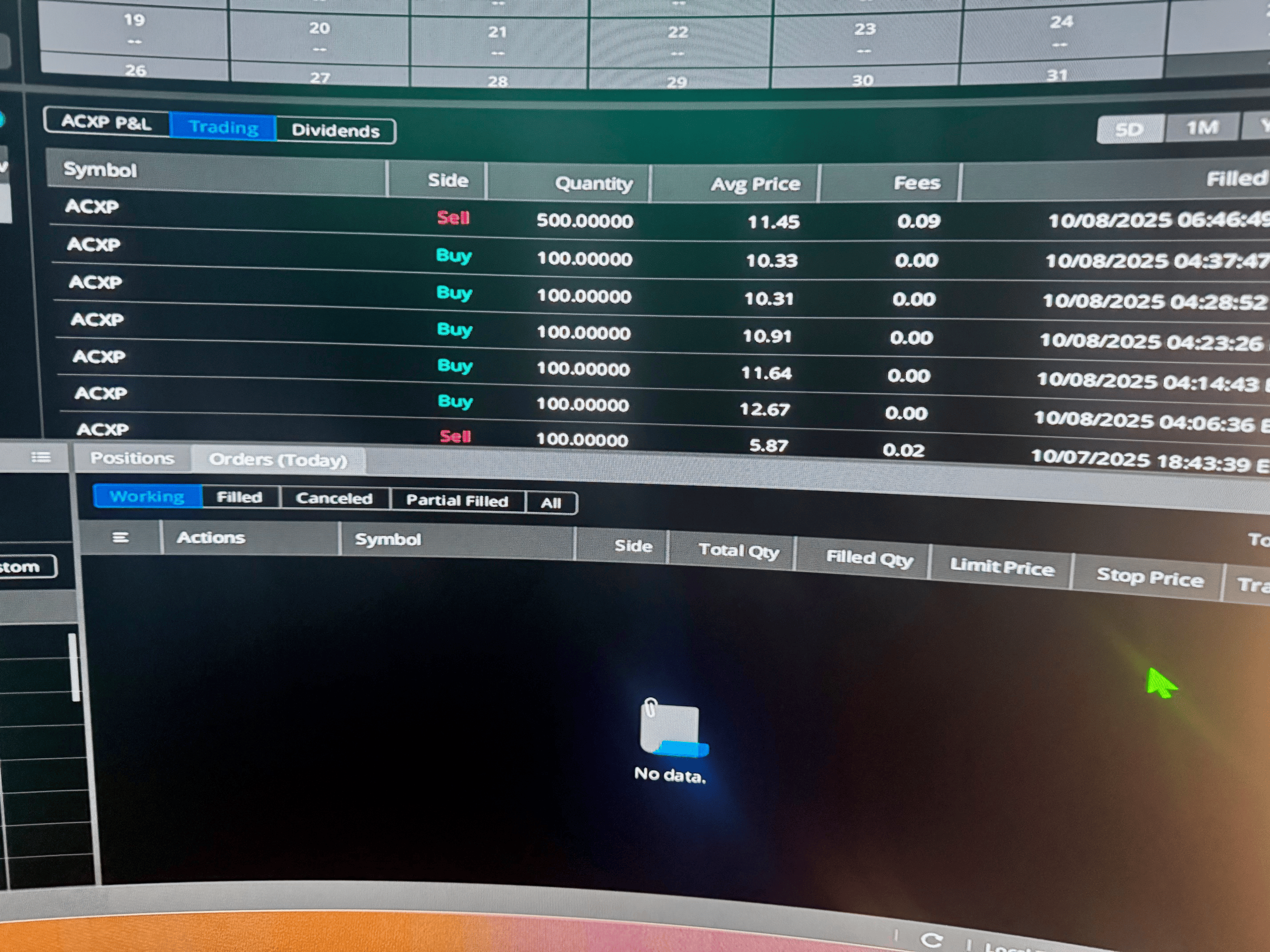 ACXP 500 shares at 11.17 out at 11.45. Tried 5 min chart helped us stay in but entered near high at 4:06 am, sized up couple of times. Was after hours runner and it looked like it would continue in pre-market, it did but I entered too late, held on for 2 plus hours to get out with a profit. Did not cut loses quickly, trying to test patience and the 5 min chart show nothing was wrong, we just needed to give it time. That one tested both of our patience. Shawn woke me up to go through it with him