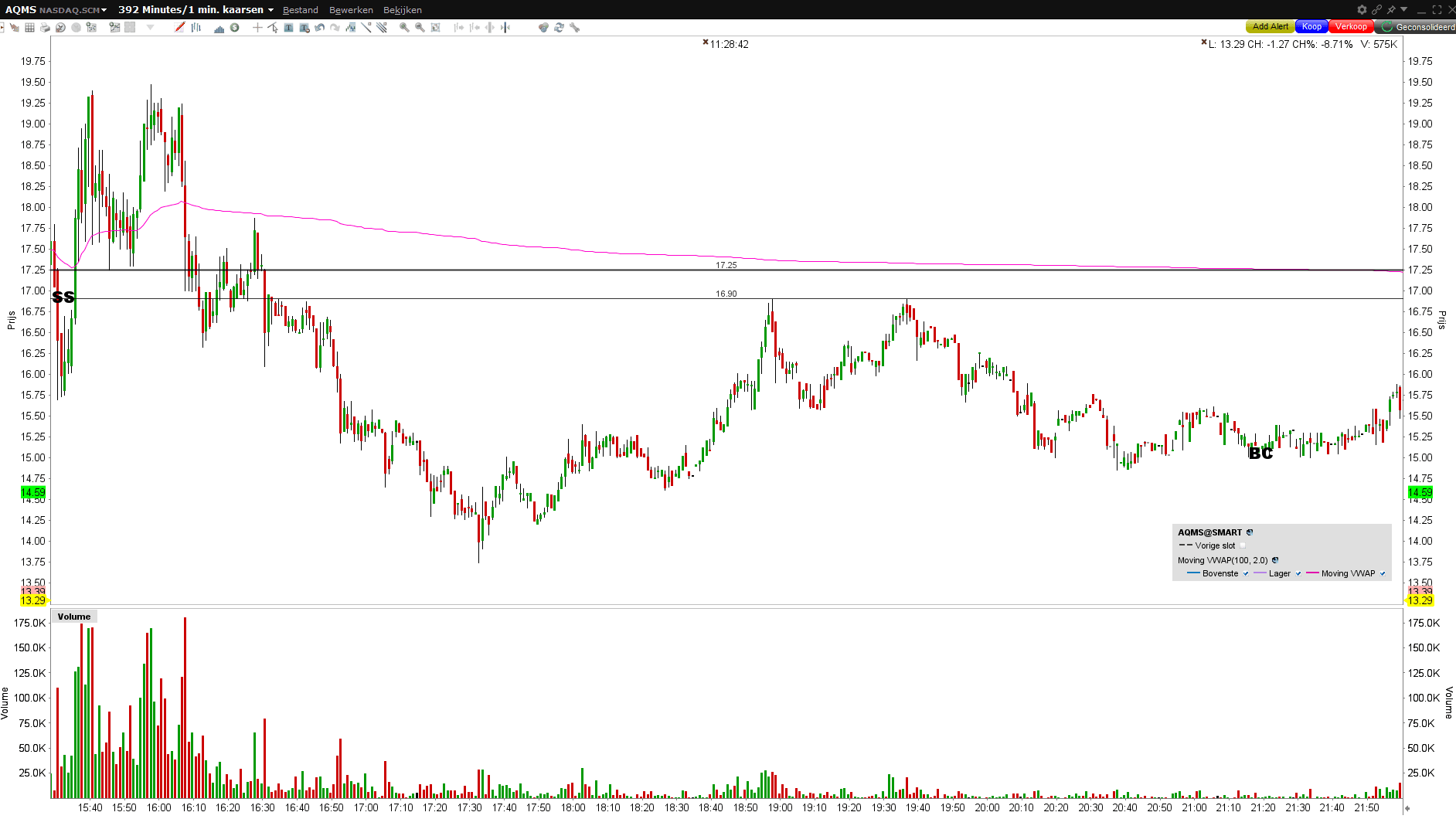 ENTRY: SRD, gister -40%. -50% van vorige close. Ik short 16.90. Weer schijt entry want op is 17.25. EXIT: best flinke pump in het begin maar kwam mooi terug. Covered einde dag op 15.03 voor 11% win. LES: stock was heel actief in PM al en deed ook veel volume. Vandaar dat de entry bietje moeilijk goed te krijgen was. Verder goede trade.