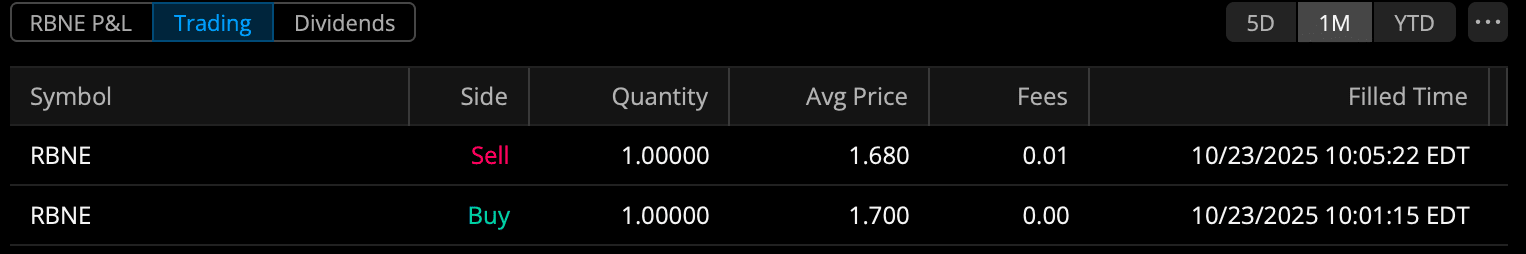 Exit comments: Small scratch on this one, it got up to $1.75 but just didn't have any more push than that so got out.