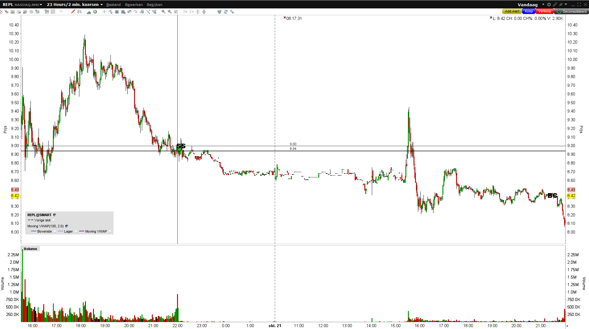ENTRY: DD1, up ong 100%. Hogere mktcap dus verwacht niet veel. Maar is wel up 100% dus kan ver omlaag komen. ik stap in iets onder 9 maar per ongeluk met mn paper account getrade super dom. Ik short opnieuw en nu met mn echte account op 9. Nog beter entry gekregen met geluk. EXIT: Cover 8.43 voor 6% gain. LES: had een kleine loss of win verwacht dus prima. Had in dit geval wel beter tot de close kunnen houden want die was op 8 maar boeie.