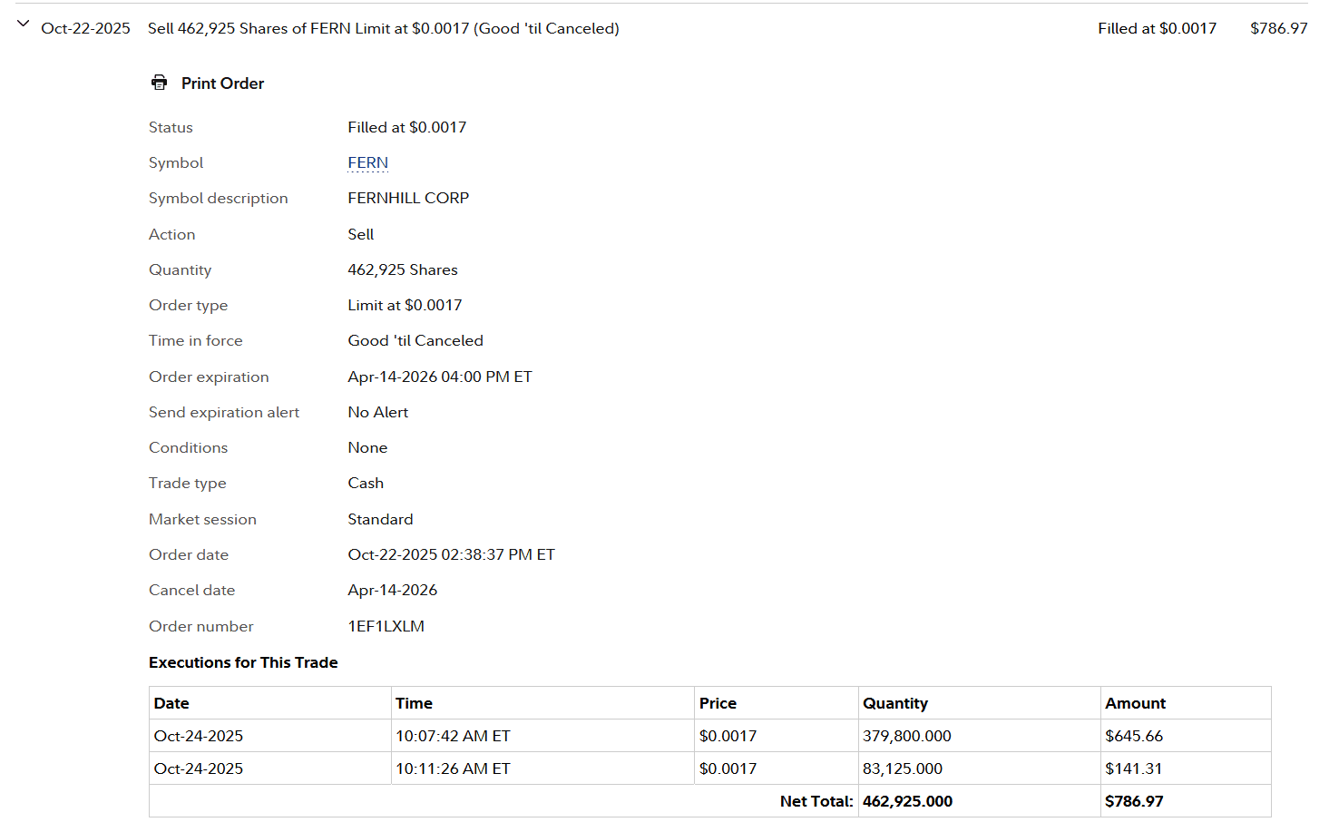 SUPER SALE STRATEGY per my 2/27/21 Profitly blogpost. Dip bought 10/16 11:26 $0.0015 250k 62% off 9/24 $0.004 HOD. I set my Limit Sell for $0.0019. Price went sideways $0.0013-$0.0018. Got a partial fill add on the crack down 10/22 9:03 $0.0011 212.925k. Set new Limit Sell for $0.0017 & Fidelity got me out 10/24 9:07/9:11. Price is $0.0018 at 9:33.