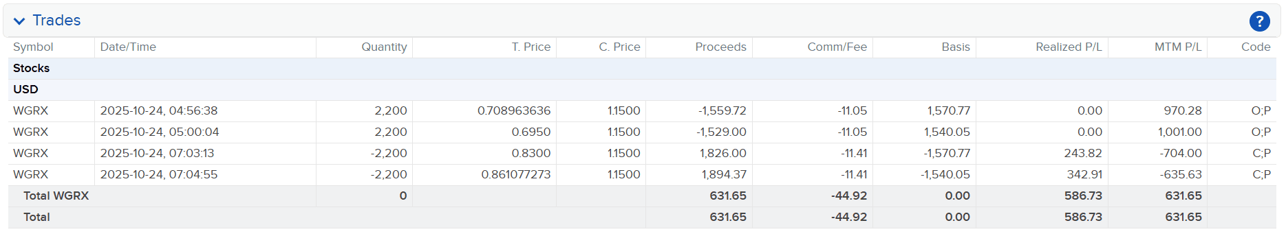 This was a roller coaster trade. I've improved at getting better entry points. Being patient and letting the price finish dropping for dip buys is paying off. I got lucky with my exit. The price started moving up and I did not exit the trade thinking it could go up more. The price then began to quickly drop, and I went from being up over $300 to negative $100. I held on and got a second chance to sell the stock at an even higher price than before. Entries are much better, need to work on exits.