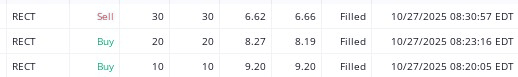 Man that was a bad one to get into.. I got RECT.. lol. I bought into it at a point that many times I wish I would buy into and don't and the stock skyrockets.. not so much this time.. should have just got out when it didn't do what was planned. But because I had such a low amount of shares I let it ride... basically off a cliff.