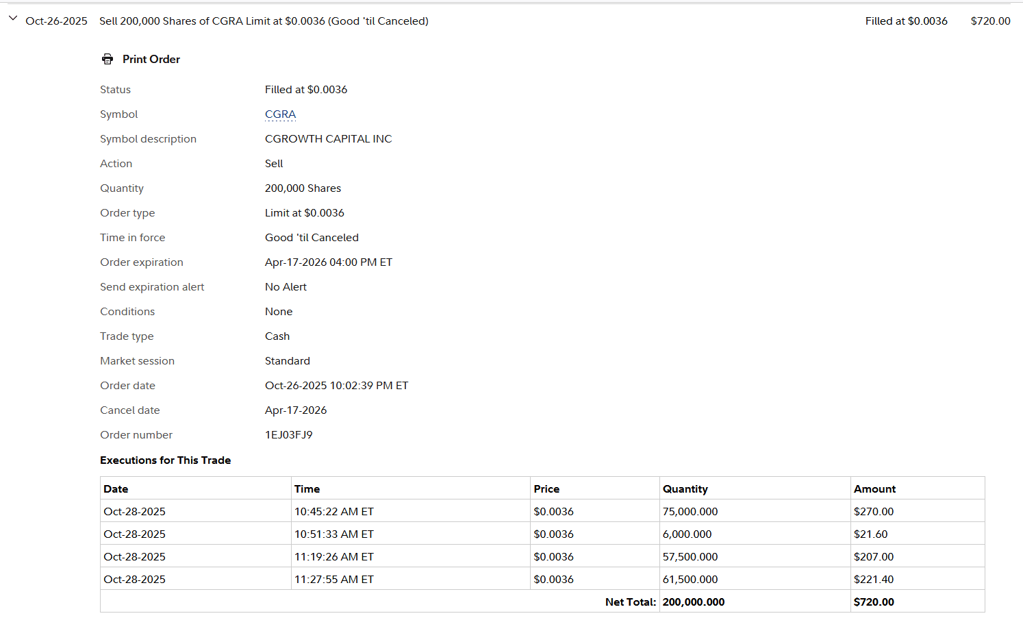 SUPER SALE STRATEGY per my 2/27/21 Profitly blogpost. Dip bought 10/21 12:50 $0.0033 100k 66% off 10/13 $0.0097 HOD. Price went down on low volume. Added 10/23 8:47 $0.0027 100k. I set my Limit Sell for $0.0039 30% win per the strategy. Price hit 10/24 $0.0038 on very low volume. I lowered my expectations, set my Limit Sell for $0.0036 20% win, & Fidelity got me out 10/28 9:45/9:51/10:19/10:27.