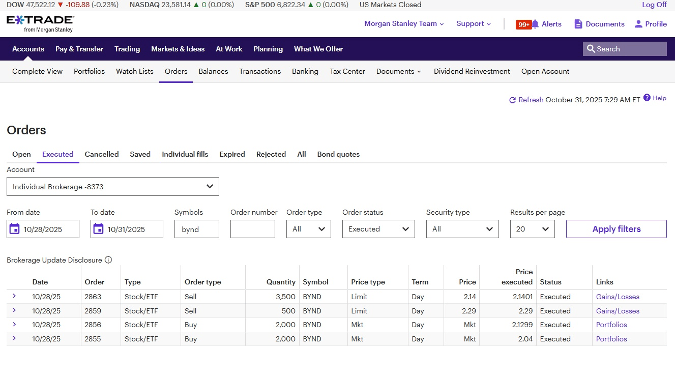 BYNDLong Stock