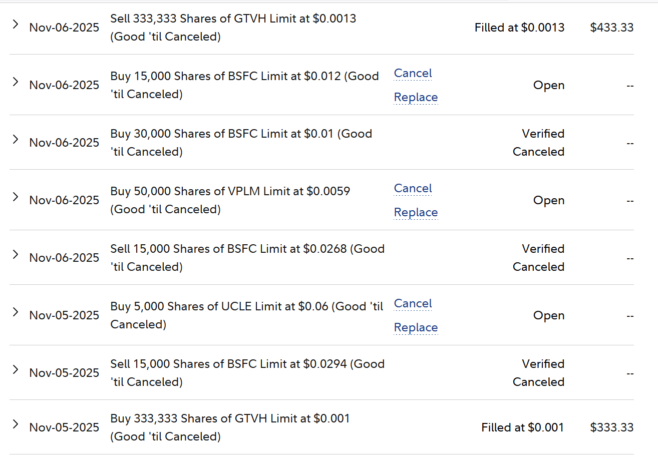 SUPER SALE STRATEGY per my 2/27/21 Profitly blogpost. Dip bought 10:59 $0.001 47% off 11/5 $0.0019 HOD at psychological support. This is an extremely repetitive pattern need to get this buy every time. I immediately set my Limit Sell for the 30% win, per my SSS, and Fidelity got me out 12:50 $0.0013.