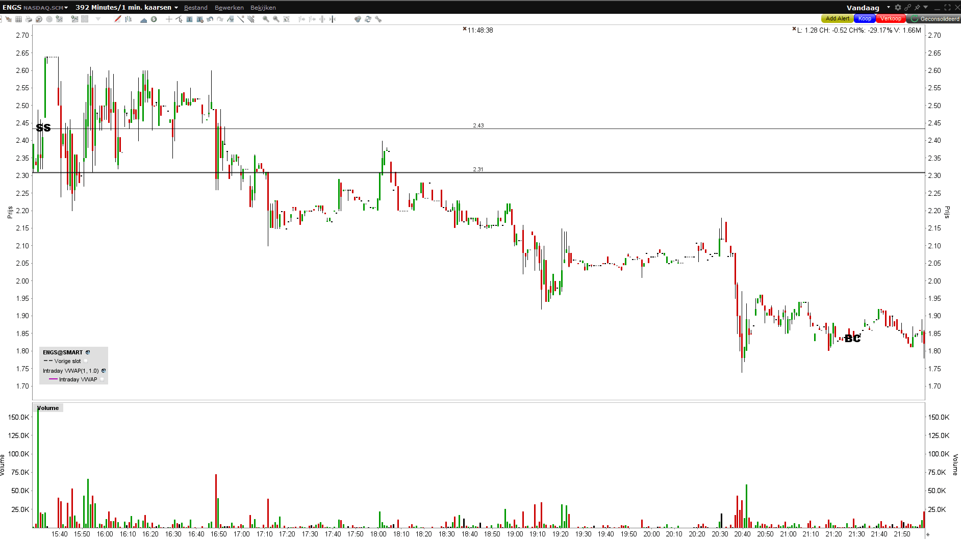 ENTRY: SRD, gister down ong -65%. Mooie daily maar ziet er ook risky uit. Ik short 2.43. Heb hele goede entry want open is 5% eronder op 2.31. EXIT: Was ff spannend in het begin maar kwam daarna mooi omlaag. Covered op 1.83 voor 25% win. LES: Erg lekker trade. Had na de rare start niet verwacht dat het nog goed uit ging pakken maar gelukkig liep het goed af.