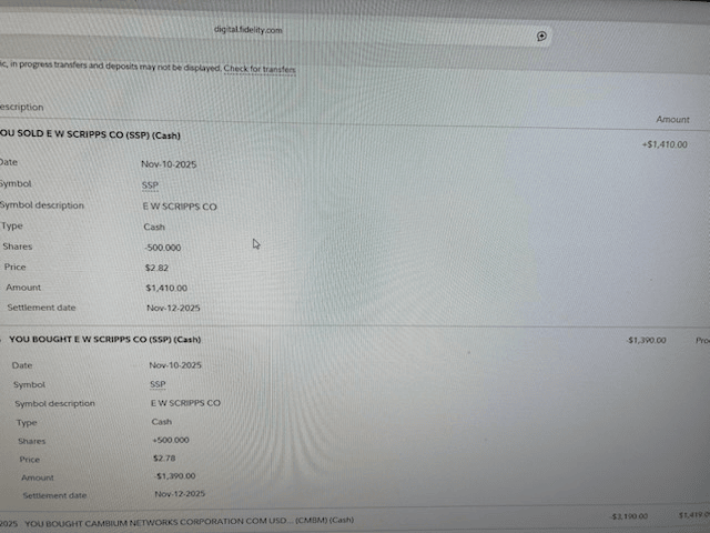 Saw on Sykes and RB scanner. Was an 7 Nov couple days ago XGPT entry suggested $2.70 target $2.92. Hit $2.84 so thought might get pullback and entered a buy for $2.78. It bounced between $2.76 and $2.82 rest of day. Kept until just before close and figured get out with small profit as my holding stocks not working out.
