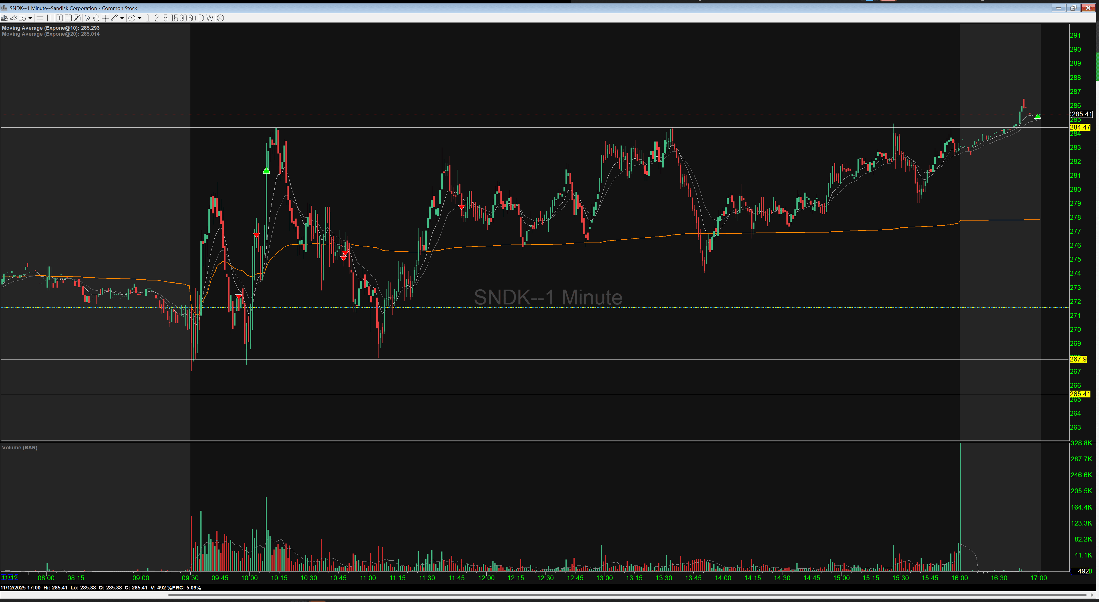 Entry comments: A little bit disappointed with how I traded this one, could have avoided most of it, but seeing $MU $STX $WDC all staying weak made me stay a bit more patient on $SNDK, on the other hand I was rushing to add my 1R size too quickly especially on something like this where it can have $50 - $80 of range
