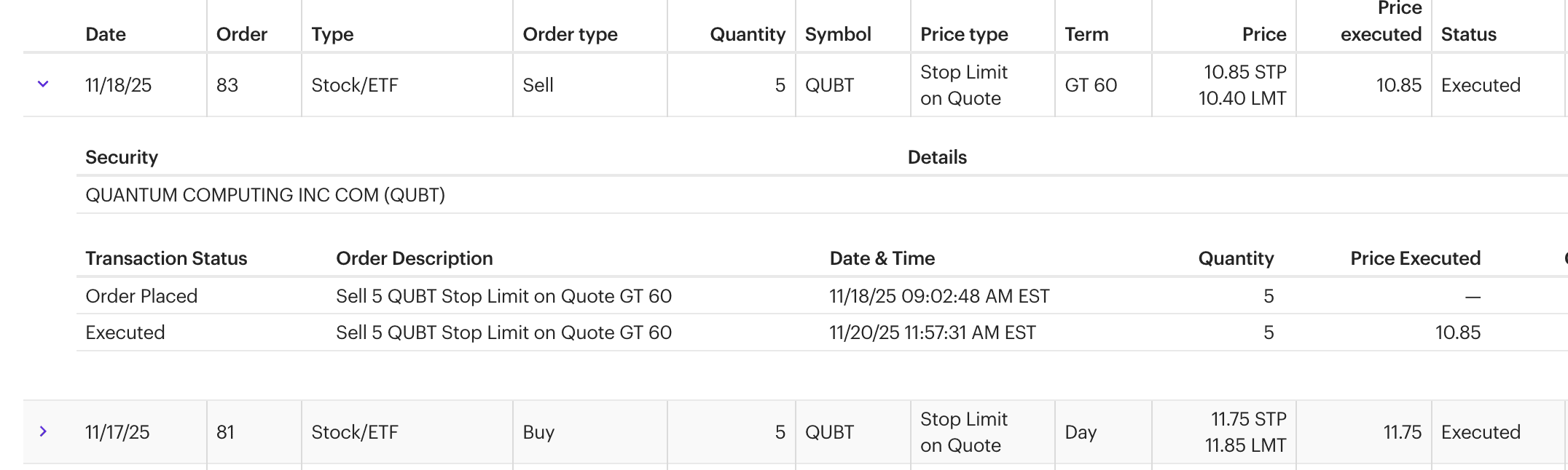 | Exit | 11/20/2025 | 10.85 |