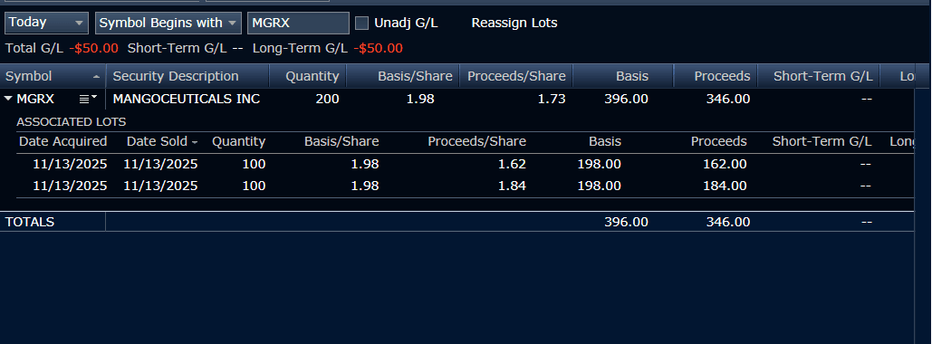 Got caught in some shady ish, and this should be a lawsuit for investors. The company released a PR stating they had internet rights to the GLP-1 medicines from ELI-Lilly, AND Novonordisk. Ok, sounds alright. Then later on, at about 2 pm, both of those companies issued releases stating that they had no affiliation or deals with MGRX to do any of it. Stock plummeted, and hit my sell. Just glad to have a stop, but this is beyond manipulation right here.