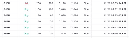 this one got me tired. very undisciplined..Now that I am out it is moving up again.. lol.. but I bought into this one at a high price where I thought it was going to go up and it didn't. I bought my way out of a loss. But it was holding where I ended up with price. I wanted a 10% which needed another 10 cents but I really wasn't seeing it coming.. however, it's now @2.14 :)