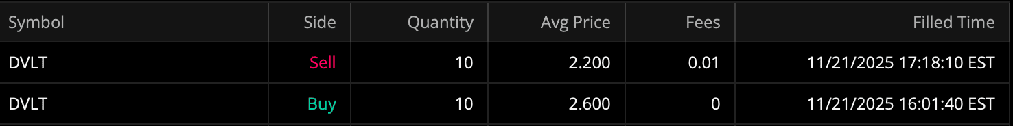Exit comments: Wow, just wow. Got an alert that the price was failing $2.40 and had to get out into major slippage. No bad news, looking back now I feel like this was total panic selling. And I should have dip bought into the panic. But I have to stay disciplined. Can't set a stop / trade plan then ignore it. I can't HOLD. Should have followed Tim S's OSRH weekend alert instead as it's winning in AH.