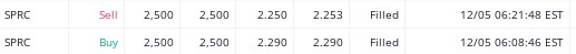 a little bummed.. not surprised. I got in on this one as it was the 3rd drop after TS got in and bought more. This one was a SHORT on all my charts and all those signals said to stay out.. I didn't. The only signal that I saw that was positive was the MACD was about to turn green. It did for a small period when it came back.. I also had a stop loss @2.25 which I didn't follow because I got another encouragement from TS. LOL. I got out after he did as it hasn't gone well for me when I haven't