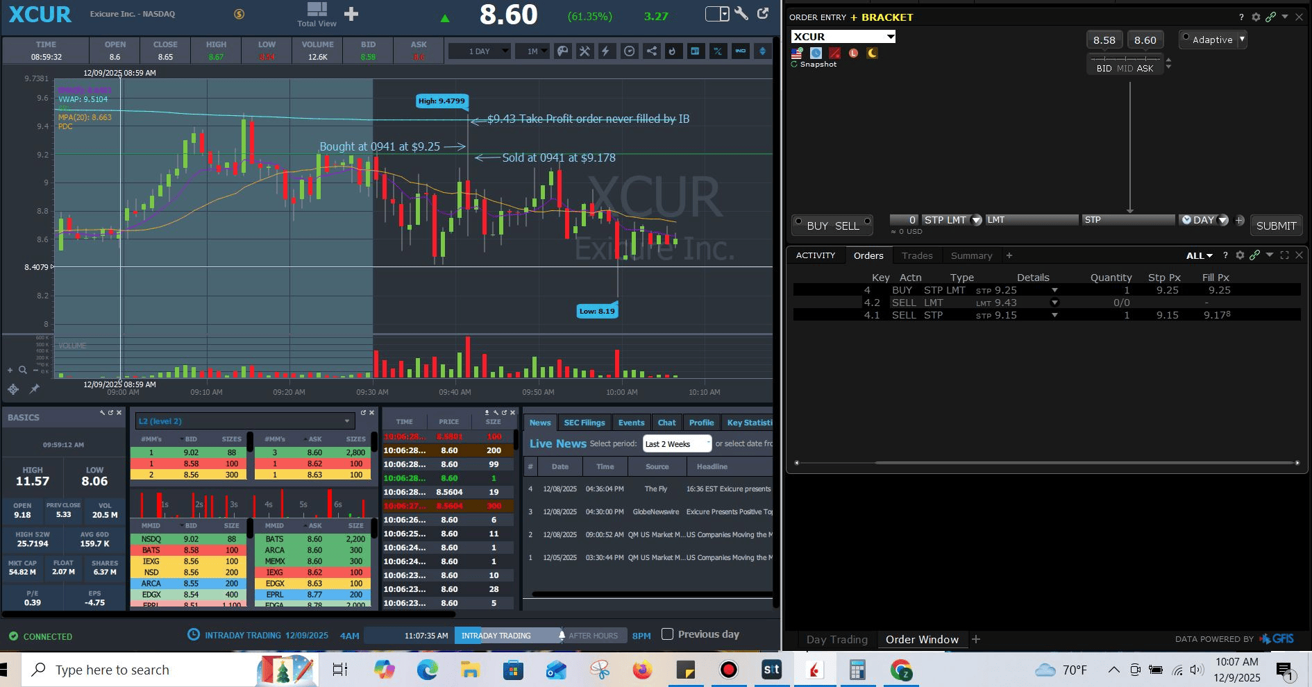 News on 12-8 at 4:30 PM "Exicure announced results from its completed Phase 2 trial evaluating burixafor in combination with propranolol and granulocyte colony-stimulating factor for the mobilization of hematopoietic progenitor cells in patients with multiple myeloma undergoing autologous hematopoietic cell transplantation."