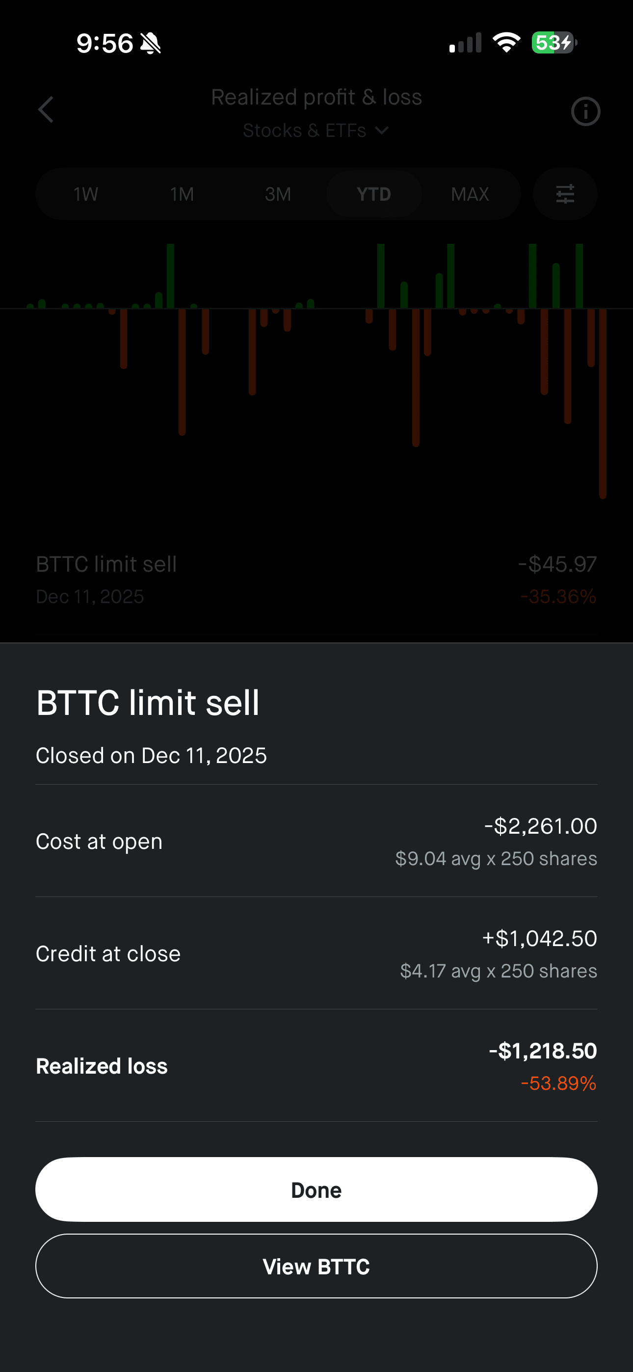 One of my biggest losses in a few months. I am so mad at myself for watching it go down and kept saying to myself “it’s going to bounce” and it never did. It had a good news catalyst and broke out above previous highs before market open. But it just wouldn’t rebound. I deserve it though. I knew better. Good lessson and reminder to cut losses. Now I have to work my way back up. Tomorrow is a new day.
