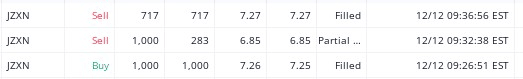 Got out too early.. I don't like these opening buys.. I wasn't watching the time.. but this one opened and dropped and I was about to take a big loss, and only got a partial sell fill. Then it started spiking and I sold as it passed my purchase entry and started down again.. but then went up..it's over 7.55 now.. just got scared.. you'd think after over a year, I'd be better at this. lol
