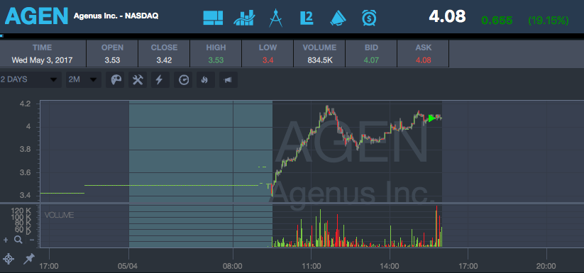 Entry comments: This stock is putting up a strong first green day on a big deal https://tim.ly/2BLhnh8 with an $80 billion company GILD, not the most volatile stock, but solid news/catalyst/chart, goal is to make 5-10% into overnight gap up/ideally morning spike tomorrow too