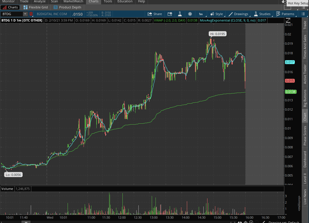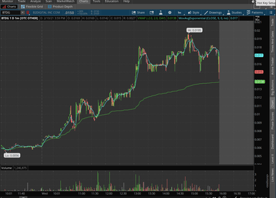 Entry comments: Holding its gains well and even breaking out a little so I'm taking bigger position, goal is for it to retest day highs today or tomorrow, not sure if I'll hod overnight, gotta see how it acts into power hour but biggest % gainer and most volume on my entire watchlist so it's a screaming first green day OTC play with a solid news catalyst