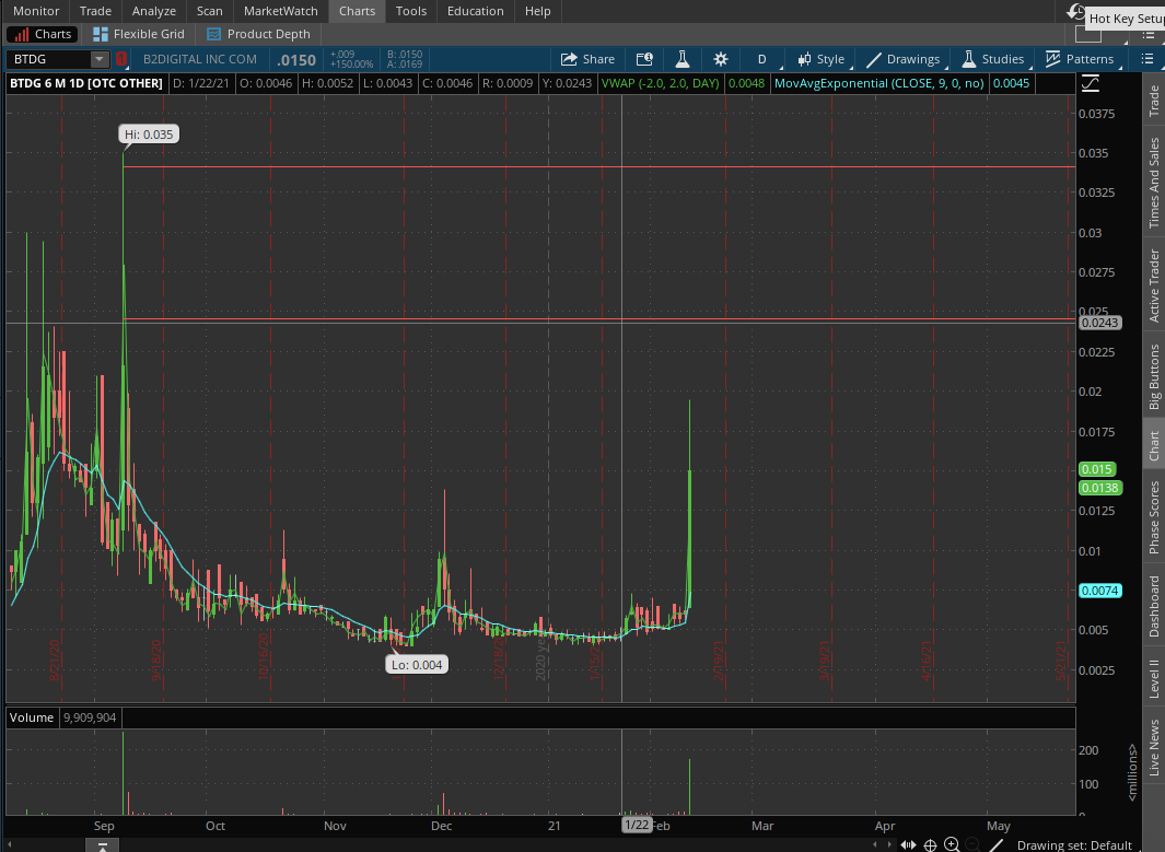 Exit comments: Tried to be patient, but small gain since it's not breaking out convincingly or even retesting earlier highs at .035 so I'll just play it safe and take small gains to protect myself, potential rebuy on any big dip or breakout only, not this midrange choppy price action
