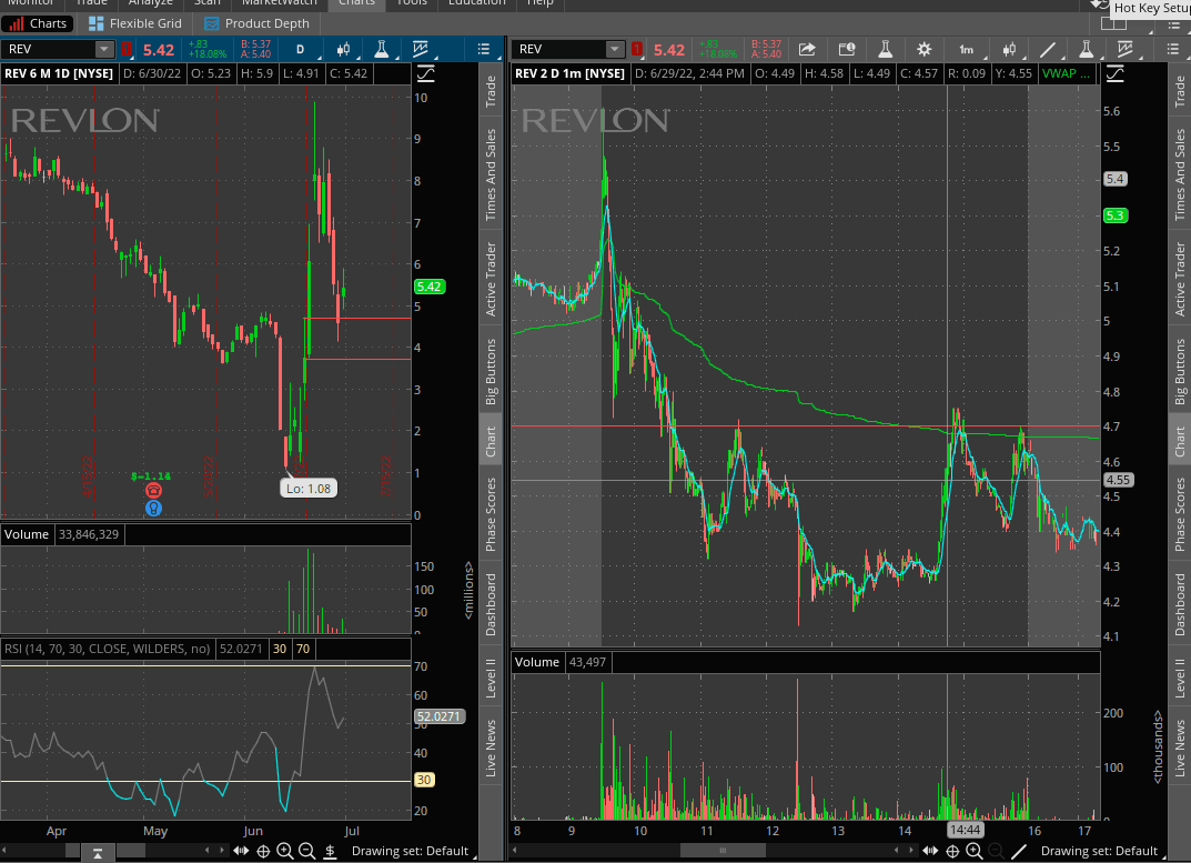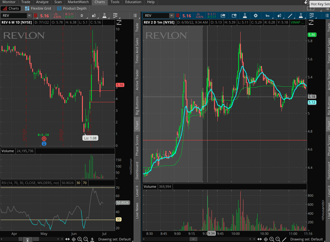 $REV TRADE- recent runner that had been coming down, was looking for the FGD as it had spiked premarket- at the open it was holding above VWAP and looked strong so i bot got a quick spike but immediately pulled back and had to cut for a small loss, did end up spiking like i thought 30 min later