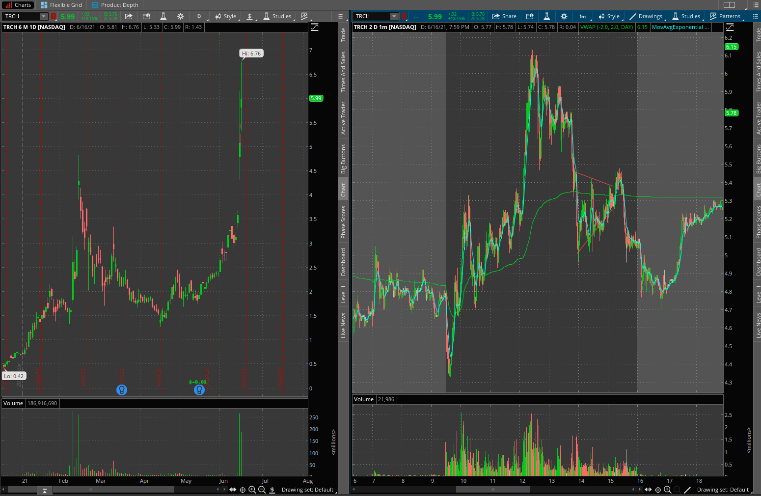 $TRCH TRADE- HAD A BIG GREEN DAY/BO- WAS FORMING HIGHER LOWS AND THOUGHT IT COULD RUN TOWARD CLOSE BUT FAILED- DID A GOOD JOB OF STICKING TO MY PLAN