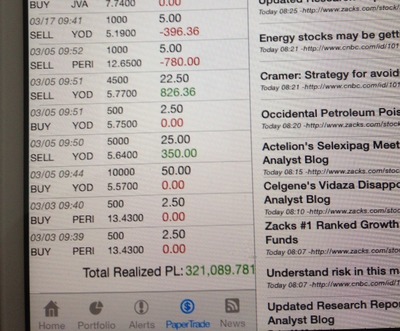 @Alleywolf hey man, keep it up! I did exactly what you did and paper-traded on stocktracker for iPad for last couple of months while simultaneously learning as Tim's student. It's great practice! I have just recently started trading last week with $2000 of my own money, was a little rough getting used to the suretrader platform from stocktracker on my ipad but I got the hang of it lol. I am having fun doing some trades at the moment my strategy being primed on shortselling and cutting losses quickly so dont mind by winning % :P lol just a beginner like you. Anyways im up just over a hundred $$ in profs in my first week and a feels good, but your taking the best approach in terms of minimising your risk by papertrading first. Heres my Total Realised P/L starting from a $100,000 paper trading account 3 months ago.. and also a photo of my biggest banked trade, hoping to make it a reality and into the 7-8 figures eventually. Keep me updated bro, we could rise up together, and if your not @timothysykes student yet I recommend that immensely nobody has a such a powerful teaching ethic than him. Best advice I can give is to be patient and cautious, let the market serve you, take profits and losses quickly; not the other way around.