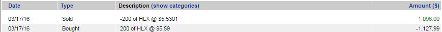 My first trade was $HLX. I sent my order at 5.59 and got executed. It was nearly 30 cents from its HOD and I was looking to sell at that level.