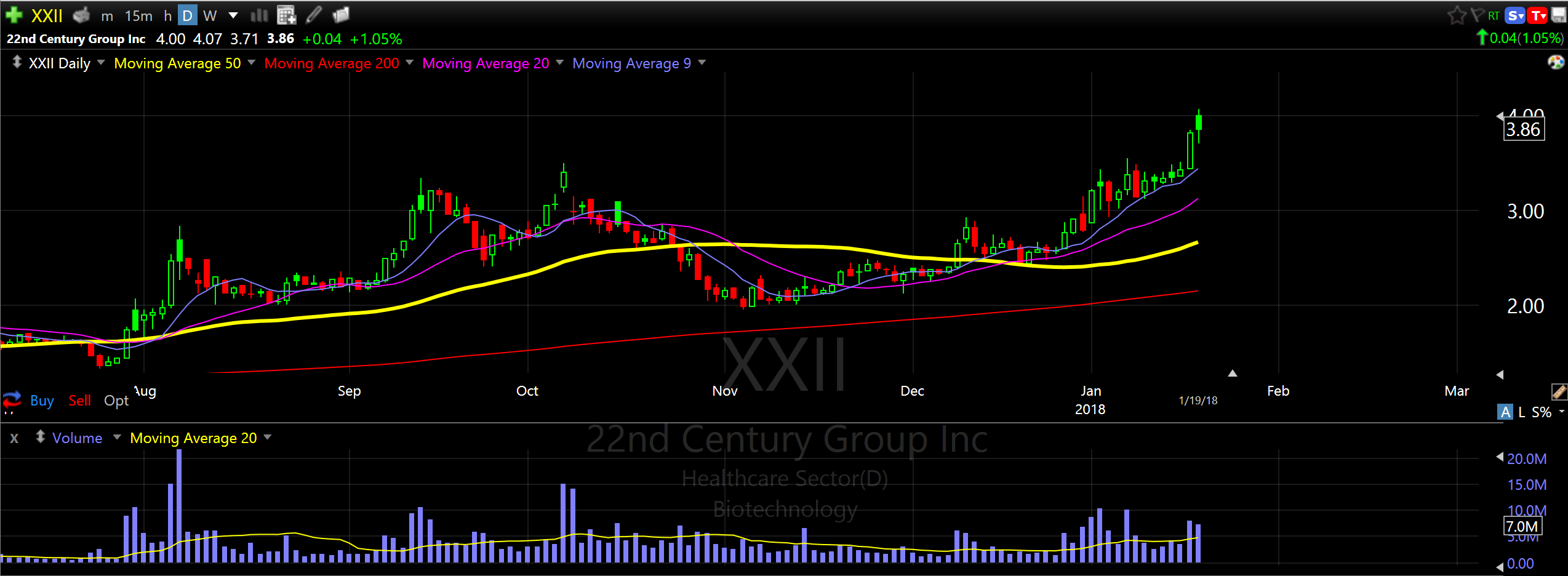 d. Interesting cannabis play but dreadful stock that's grossly overextended and trading around major resistance.
