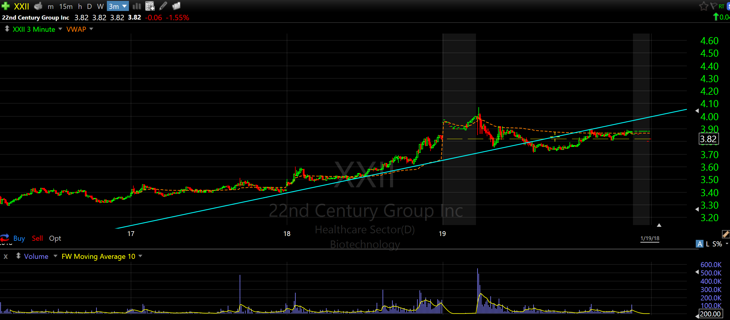 b. Held support @3.85 and closed with an "in neck line" continuation candle BUT stock has a history of reversing and selling off swiftly ... and crushing bulls.