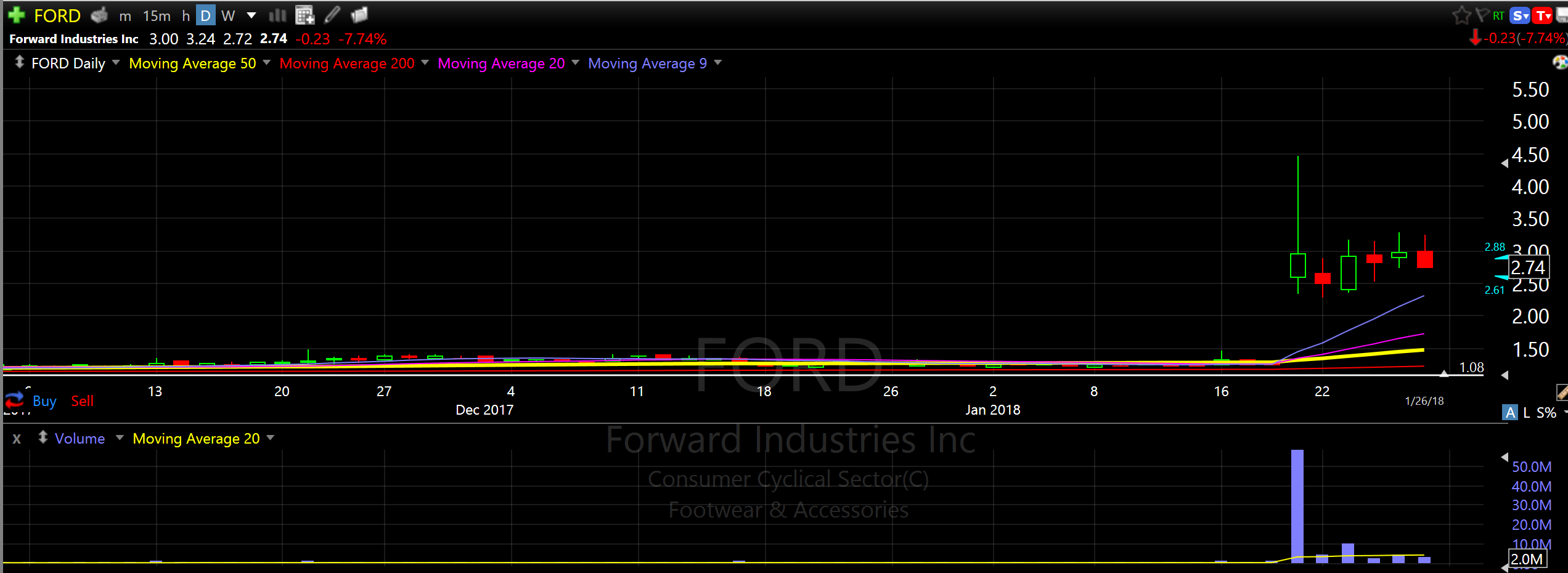 Hyped stock up roughly 55% over the lat 5 trading session that distributed all day per Friday intraday volume pattern. Reversal doji on the daily chart. Without an ample chart history to rely on tough to make predictions but the overall trend is down. Always trade on the side of the long-term trend.