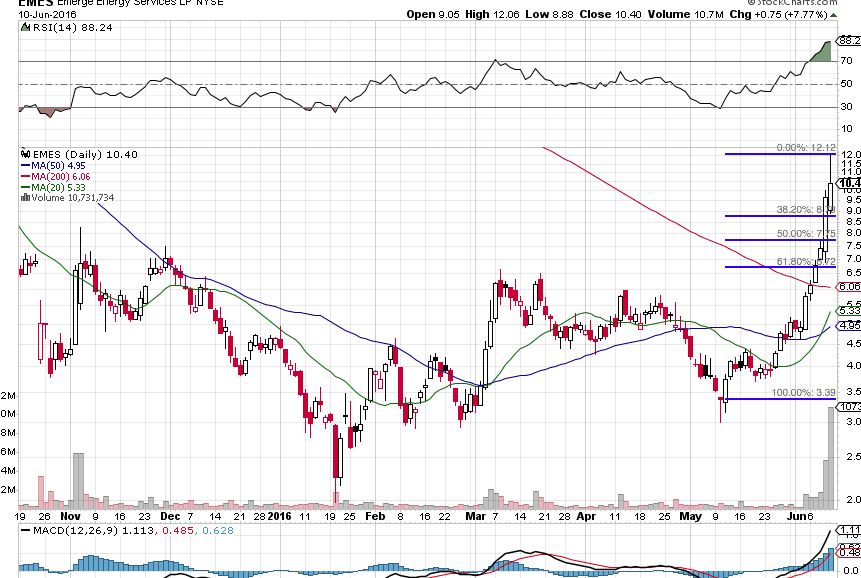 EMES : Bearish overall, overextended chart. waiting for a pull back to 8,5. Maybe a morning spike and looking for 1st red day. Need to find shares to short. Stock needs to retrace before it continues if it does