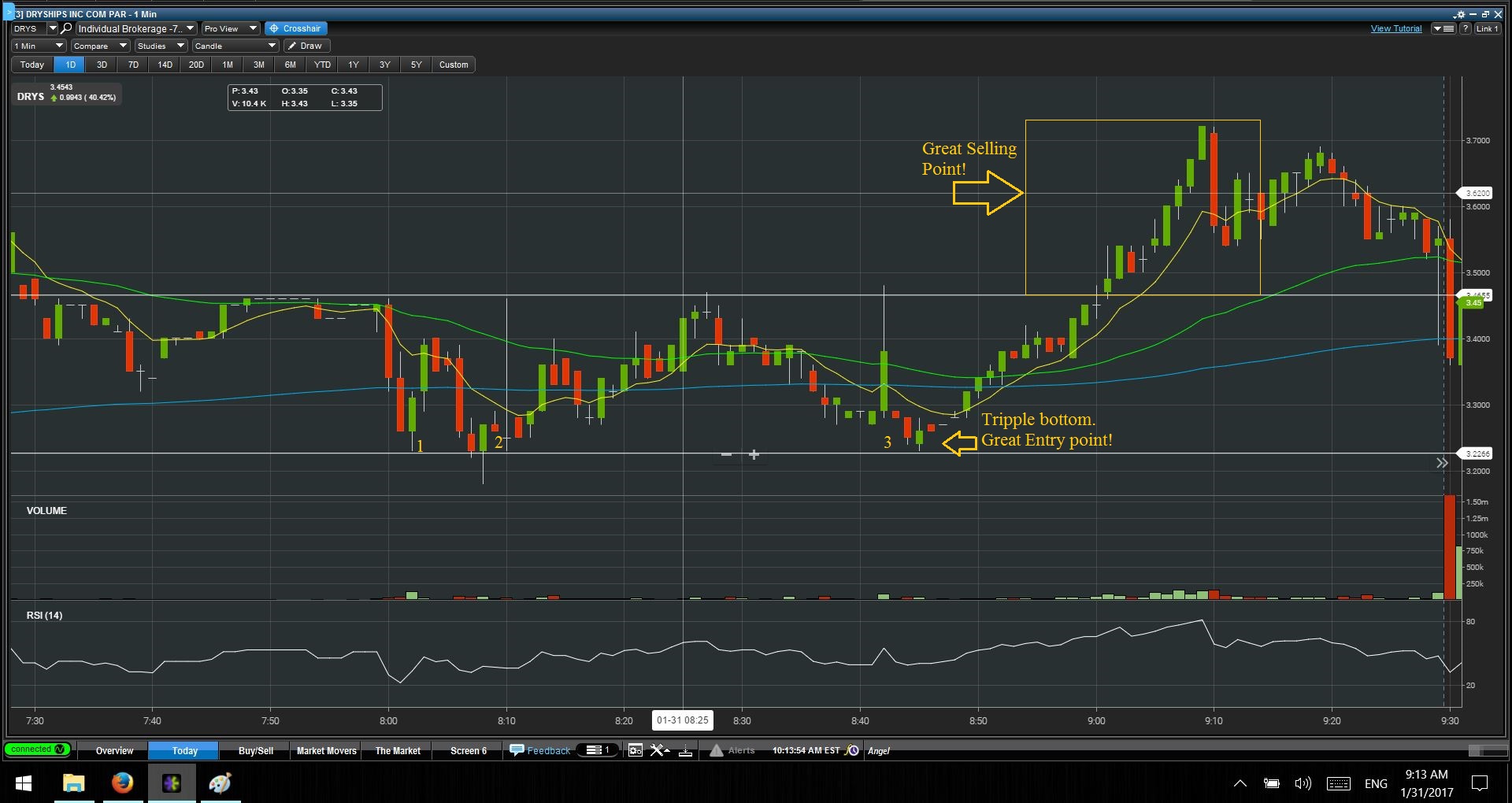 This premarket morning was pretty intense for $DRYS I should have bought the tripple bottom like I said I would. Got tooo scared. This was stock was a major runner a few weeks ago I figured that I could have made .20-30 cents from the triple bottom. The stock actually went up about .50ish cents. Great lesson.!