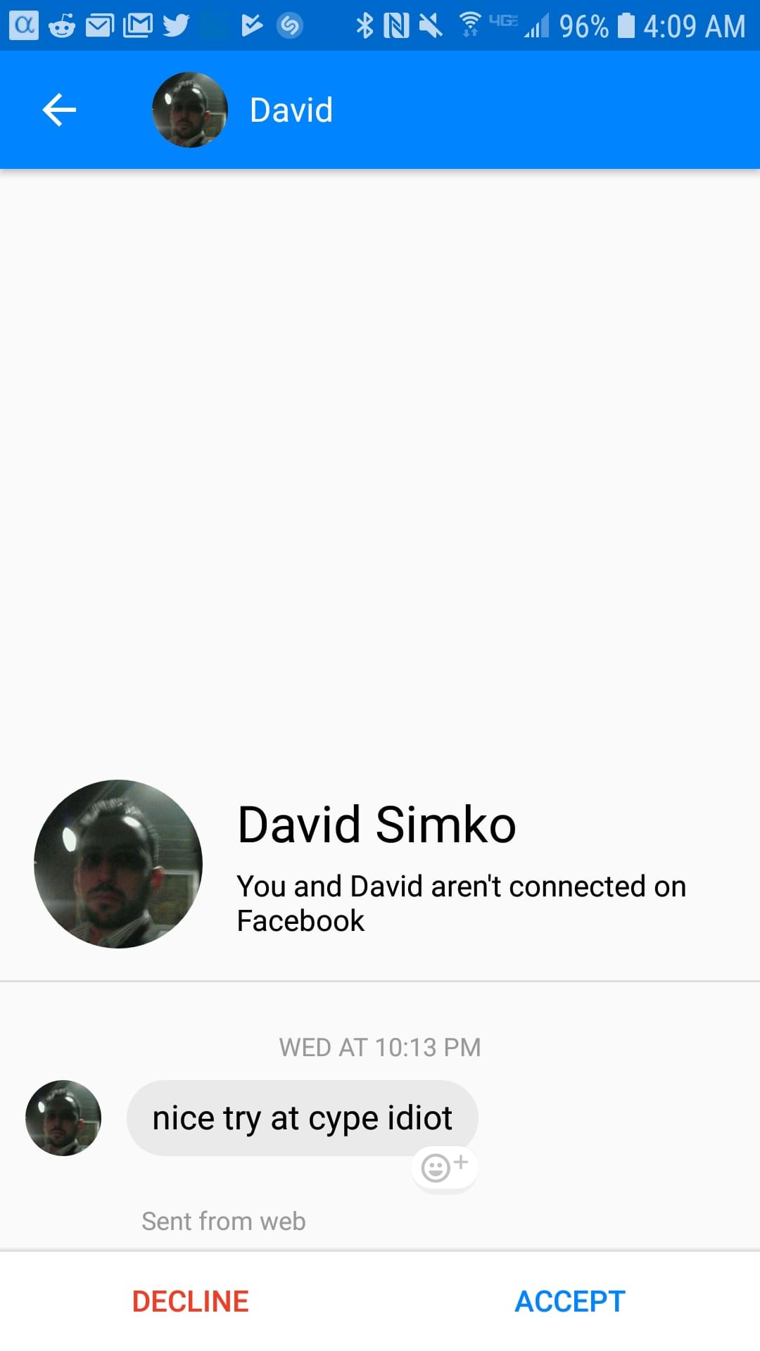David Simko @dave15213 Hate mail I don't even know this guy. Never said a word to him in my life and I wake up to this message. Posted Aug 09, 18 7:29 AMbyAustinBustamanteTickers CYPEViews 229 / 0Received 0 KarmaJoin now or log in to leave a comment