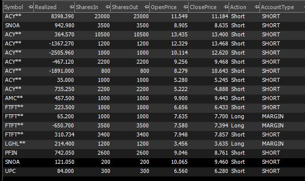 Wild ride today. Mostly good trades except $ACY Got smoked on the big move, but I stuck with it and crushed it on the back side. I'm not a big fan of +-$5K moves in one day, but oh well, should have waited for the right time instead of trading front side with size.